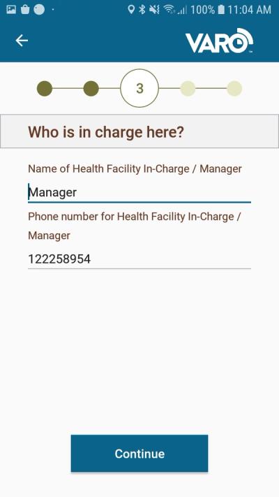 Briefly enter the health facility name and supervisor’s contact information. If you’ve made a report in the same place, Varo automatically matches it with the previous record.