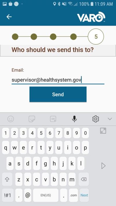 Varo generates a standardized report. Enter the recipient’s address, and Varo hands off the report to your phone’s email app, ready to send.